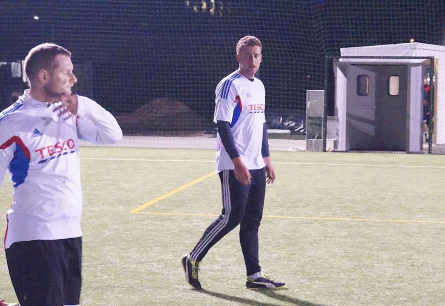 Taksówkarze stosunkowo szybko otwierając wynik liczyli na szybkie zwycięstwo. Jednak TESCO nie zamierzało oddawać tego spotkania i po chwili panował remis. Jednak taksówkarze dokładając kolejne trafienie schodzili na przerwę z jednobramkowa przewagą. TESCO na dziesięć minut przed końcem ponownie rozpoczęło strzelanie by kilka minut przed gwizdkiem kończącym mecz prowadzić jedną bramką. Pomimo usilnych prób taksówkarzy nie udało im się już zmienić wyniku, a spotkanie wygrał zespół w białych koszulkach.