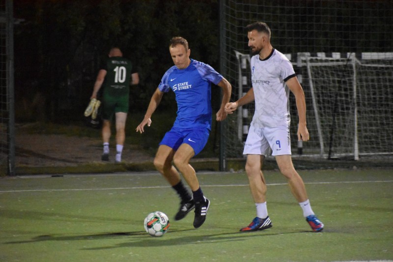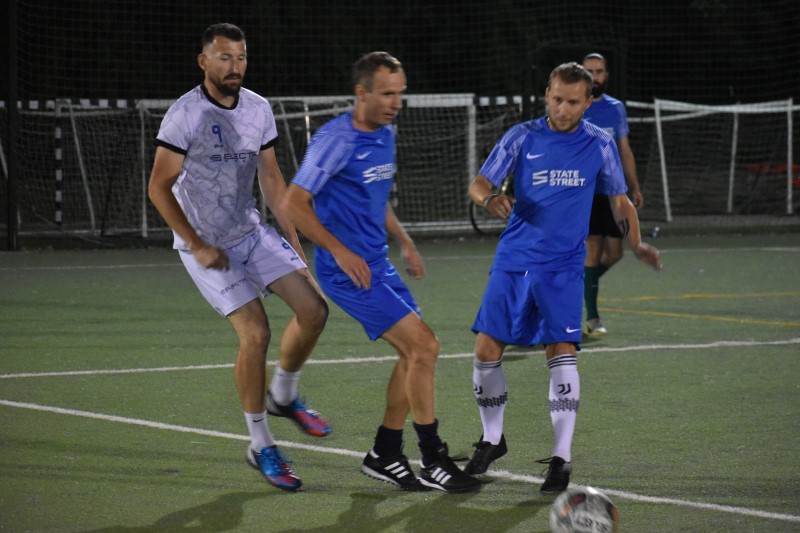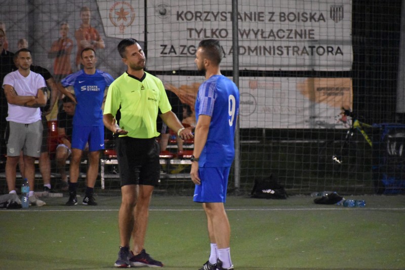 Dwa różne oblicza miało spotkanie marzących o medalach zespołów. Pierwsza połowa zakończyła się bowiem bramkowym remisem, a ciosy Szymona Bierówki i Patryka Likusa bezbłędnie ripostowali Krzysztof Cholewicki i Krzysztof Mirek. Po zmianie stron sprawy w swoje ręce wziął już State Street, który raz po raz atakował bramkę strzeżoną przez Jakuba Bieńczyckiego. Najpierw swoją wysoką formę potwierdził drugim tego dnia trafieniem Cholewicki, potem zaś wynik ustalił Rafał Dłubisz i to „Niebiescy” zakończyli 11 kolejkę na upragnionym podium.
