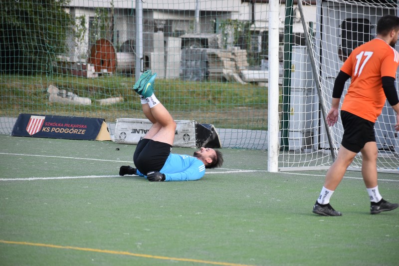 Tempa nie zwalniają zawodnicy Sprzątamy-Kraków. Doświadczona ekipa na dobre zapomniała o początkowym kryzysie i zniwelowała straty do podium do zaledwie dwóch punktów. Tym razem boleśnie o sile zawodników w czarnych koszulkach przekonało się TE Connectivity. Po cztery gole i asysty do swojego dorobku dopisał wyróżniający się w ofensywie Dominik Marzec, a z dobrej strony pokazali się również Krystian Sławęta i Patryk Ryszka. Tuż przed przerwą o honorową bramkę dla pokonanych pokusił się Kamil Łukasik, jednak nie ustrzegła ona „Pomarańczowych” przed definitywnym spadkiem z I Ligowych boisk.