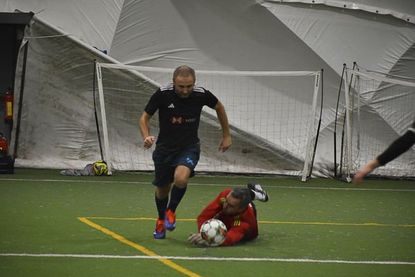 HSBC to drużyna zagadka. Potrafi wygrać z silnie kadrowym 4-4-2 Sport Pub, aby za tydzień ulec Huntsmanowi, który przed tym starciem nie miał na swoim koncie zwycięstwa! „Czarni” zaczęli nie najlepiej. Po niespełna dziesięciu minutach przegrywali już 0:2, po dublecie Michała Pilarczyka. Wyrównali dzięki golom Marcina Kozery i Piotrka Szuby, ale to rywal na przerwę schodził z lekką przewagą (Damian Halz). W drugiej połowie Łukasz Chmolowski dwukrotnie trafił do siatki, ale raz do swojej. Wcześniej Damian Halz skompletował dublet i to „Granatowi” inkasują pełną pulę, sprawiając nie małą niespodziankę (5:3). Wylosowali szczęśliwy los, bo w kadrze HSBC tym razem zabrakło Bartka Prętnika.