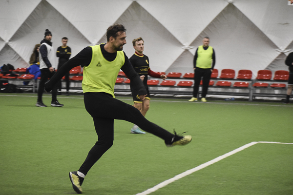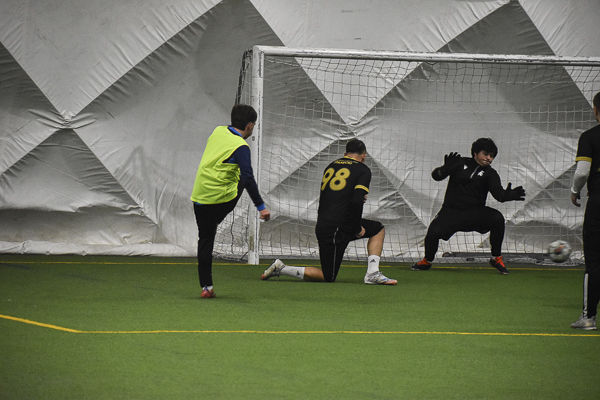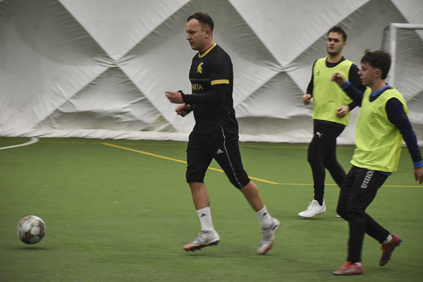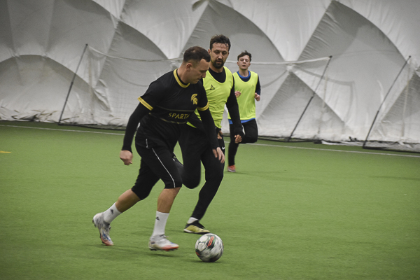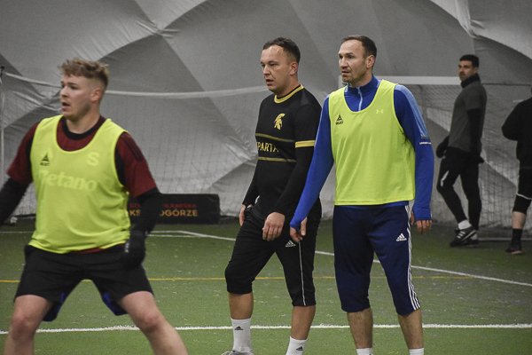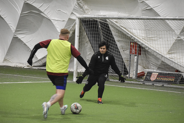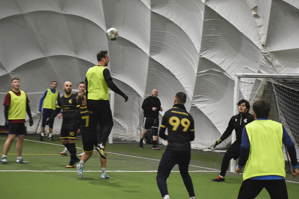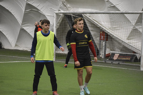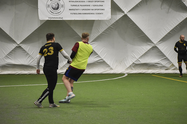 Aż siedemnaście bramek padło w rywalizacji Huntsman – Sparta. Jeden z kandydatów do medalu, a nawet mistrzostwa musiał się trochę napocić, aby zgarnąć komplet punktów w starciu z „czerwoną latarnią” ekstraklasowego zaplecza. „Granatowi” długo dzielnie się bronili i grali ze „Spartanami”, jak równy z równym, dzięki skuteczności Oliwiera Płuchowskiego (4). Przy stanie 6:6 faworyt wyraźnie „odjechał’, strzelając pięć bramek i nie tracąc już ani jednej. „Czarno-złotych” do zwycięstwa poprowadzili: Wojtek Król (3), Michał Żerdecki (2), Szymon Sarzyński (2), Kuba Wojtaczka (2), Jędrzej Pawelec i Krystian Stanecki.