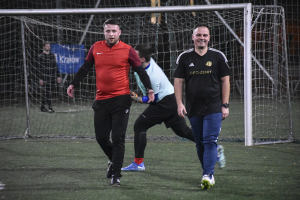 W środowy wieczór na Krakusie obie drużyny narzuciły zdecydowane i szybkie tempo, które jednak odnosiło się do gry przede wszystkim w środkowej części pola gry. Pierwszą połowę zwycięsko zakończyli Korporaci. Druga część spotkania to pogoń zawodników w czarnych strojach za wynikiem. Geo/Smasherowi udało się doprowadzić do remisu. Niestety nie wystarczyło to na nic więcej. Korporaci zdołali jeszcze zadać ostateczny cios. Po dwie bramki w tym meczu zdobyli: Wojtek Salamon oraz Seweryn Frączyk.