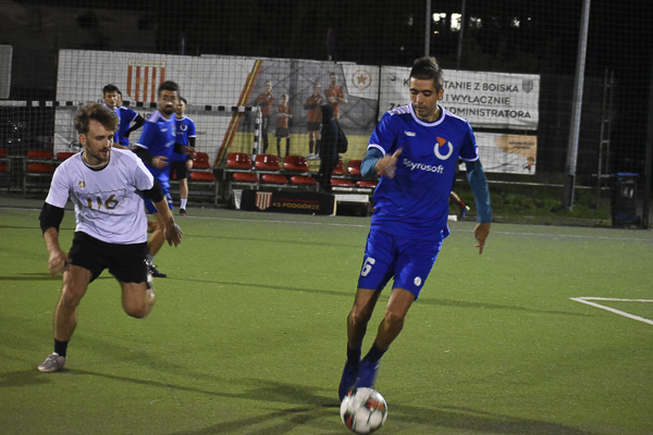 Pierwsza połowa nie przyniosła nam bramek, choć sytuacji nie brakowało. Zapowiadało się na kolejny wyrównany bój. Przypomnijmy, że w pierwszej rundzie mecz z udziałem Bistro 116 i SpyroSoftu zakończył się podziałem punktów (3:3). W drugiej połowie pachniało powtórką z historii. Na 1:0 trafił Piotrek Foryś, wyrównał Grzesiek Migacz, ale ostatnie słowo należało do Maćka Kwietnia, który posłał celny, płaski strzał z dystansu, zapewniając „Biało-złotym” minimalną wygraną (2:1). Pozostałe wyniki nie ułożyły się „pod nich” i wiadomo już, że pomimo wygranej ten sezon zakończą poza podium.