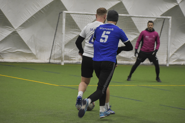 Do przerwy Arc Consulting przegrywało ze SpyroSoftem (1:3). Wynik meczu otworzył Samuel Cruz. Odpowiedział Michał Nowek, ale dwa trafienia „do szatni” Adriana Olszowskiego i Przemka Jelenia mocno podcięły „Fioletowym” skrzydła. Na tyle skutecznie, że w drugiej części ani razu nie pokonali Juliana Pawlika, a kropkę nad „i” w wygranej „Niebieskich” postawił Adrian Olszowski, kompletując dublet.