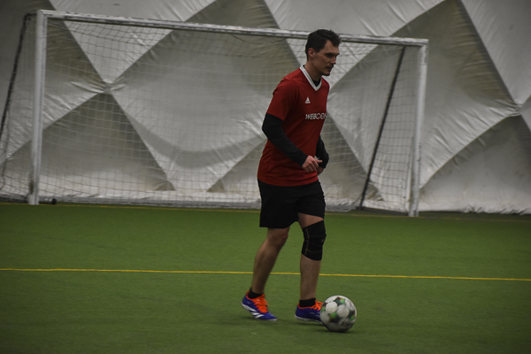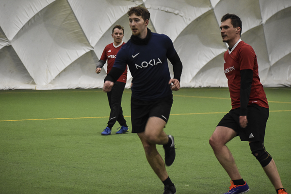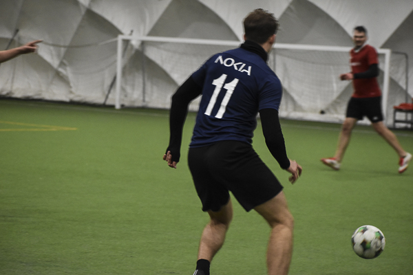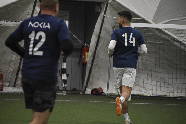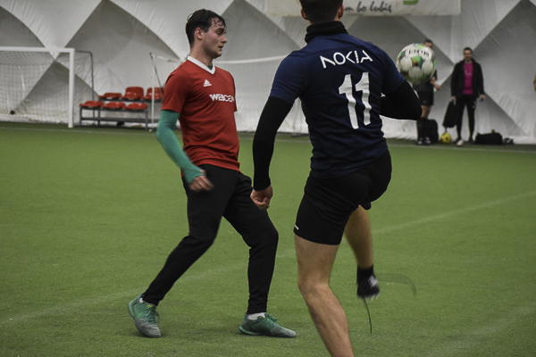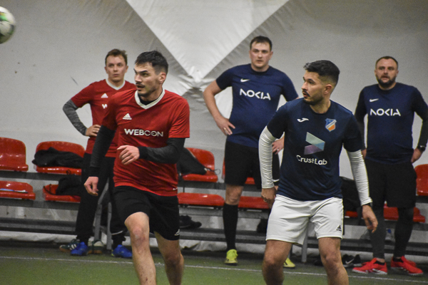 Nokia postawiła się WEBCON-owi! Po pięciu minutach „Granatowi” przegrywali 0:2 i wydawało się, że wicelider ma sytuację pod kontrolą, a kolejne gole to tylko kwestia czasu. Nic bardziej mylnego! Nokia odrobiła straty z nawiązką! Dzięki bramkom Piotrka Bieńkowskiego, Kuby Waligóry i Tomka Gardockiego zapachniało niespodzianką! Wyrównał z rzutu karnego Andrzej Kawa, a wygraną wyszarpał Maciek Duda, który podobnie jak kolega zakończył ten pojedynek z dubletem.