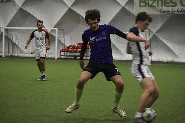 Po pierwszej połowie DM10 Cartel-Bau prowadził 2:0. Po krótkiej przerwie przewagę „Biało-czerwonych” kolejnymi trafieniami udokumentowali Arek Turakiewicz i Dawid Serafin. Arc Consulting próbował poderwać Patryk Kiwior, ale jego gol okazał się jedynym bramkowym akcentem „Fioletowych”, którzy nie zmniejszają straty do bezpiecznego miejsca. Wygraną – już dwunastą w tym sezonie – przypieczętowali Dawid Miękina i Arek Turakiewicz. Podium zapewnione, ale apetyty DM10 Cartel-Bau ma zdecydowanie większe.