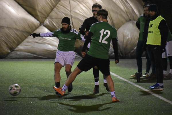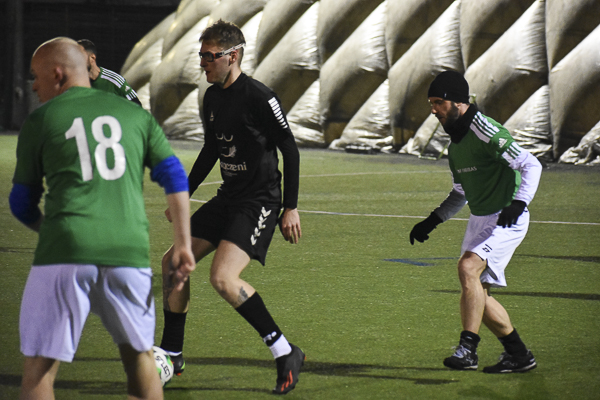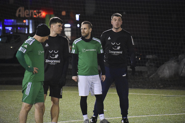 Mecz trzymał w napięciu od pierwszego do ostatniego gwizdka. Nie brakowało sytuacji bramkowych, walki w środkowej strefie boiska, czy już bliżej pola karnego. Kilka razy swoje bramkarskie umiejętności zaprezentowali golkiperzy obu ekip. Zarówno Krzysiek Kwiatkowski (Zmączeni), jak i jego vis-a-vis Krystian Percik (BNP) po razie musieli wyciągać piłkę z siatki. Prowadzenie w drugiej połowie „Bankowcom” dał Paweł Karwowski, a na kilka minut przed końcem wynik meczu ustalił Maks Wróbel (1:1).