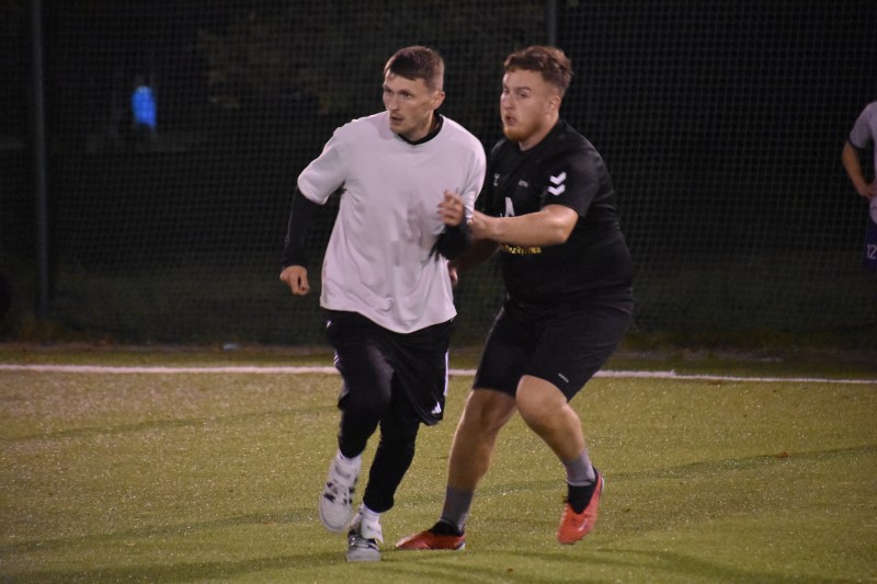 Bardzo długo czekaliśmy na trafienie w meczu ekip z dwóch zgoła odmiennych biegunów ligowej tabeli. Marzące o mistrzostwie KPFiG dopięło swego tuż przed przerwą, gdy bezbłędnie futbolówkę do siatki skierował Patryk Brytan. W poczynaniach „Prawników” brakowało skuteczności, co po pół godzinie walki skarcił doprowadzając z rzutu karnego do remisu Jakub Pozłótka. Cios ten jednak bezlitośnie zripostował Piotr Cieślak i sprawił, że team Patryka Ziółkowskiego w wybornych humorach przystąpi do zbliżającego się hitu z j-labs.