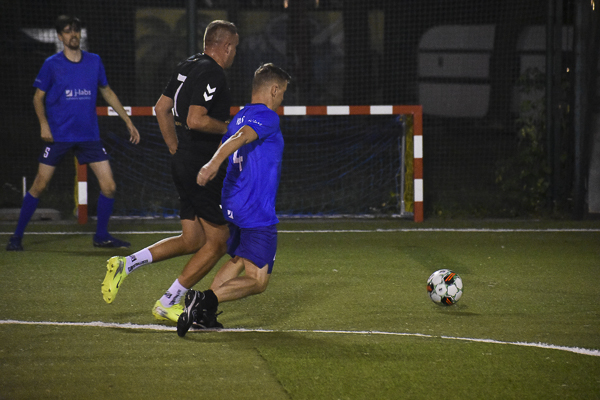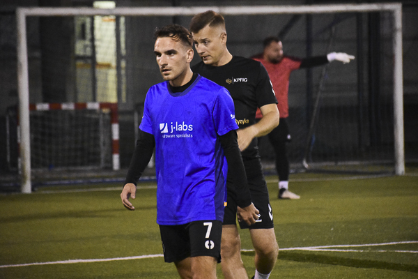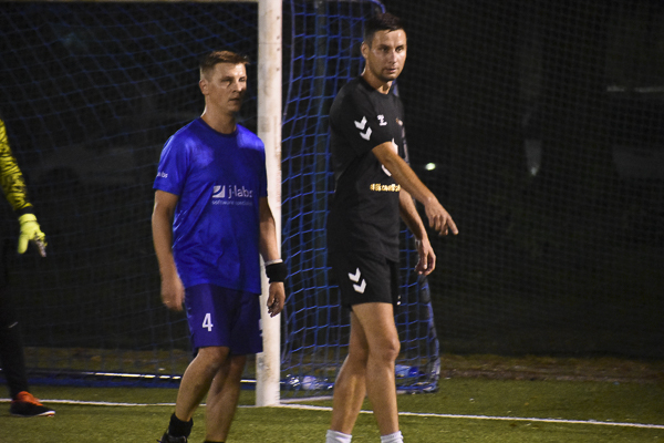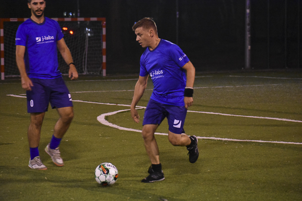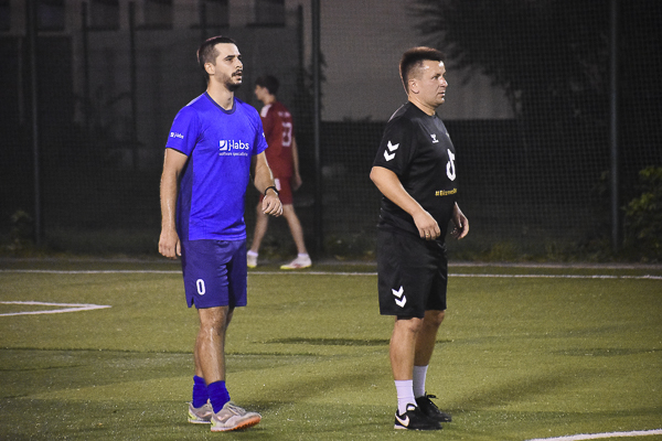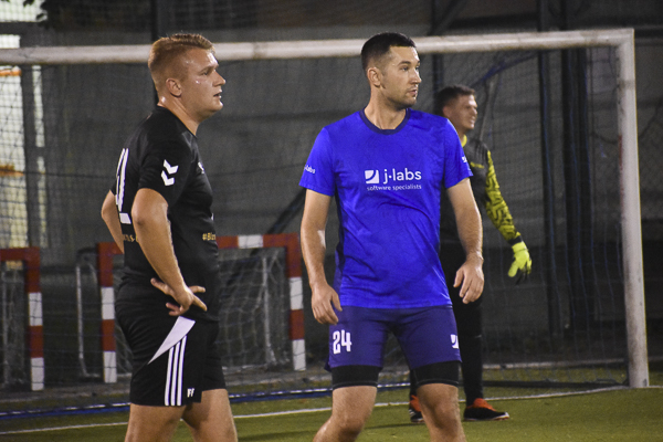 W meczu dwóch marzących o złocie zespołów górą KPFiG. Gracze w czarnych koszulkach przegrywali wprawdzie szybko po golu bezpośrednio z rzutu rożnego Pawła Ogrodnika, jednak wyciągnęli właściwe wnioski i jeszcze przed przerwą prowadzili za sprawą Maksyma Lendy i Arkadiusza Gamonia. Po zmianie stron „Prawnicy” nie zwolnili tempa, a oprócz Lendy do siatki trafił Piotr Skrzypek. W końcówce rozmiary porażki w szeregach j-labs próbowali niwelować Sebastian Dyląg i Damian Cudek, jednak nie ustrzegło to „Niebieskich” przed trzecim letnim potknięciem i utratą pozycji lidera kosztem… dzisiejszego przeciwnika!