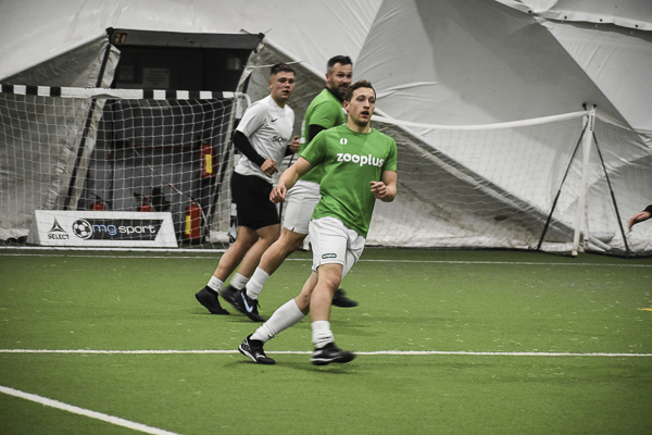 W lepszych nastrojach na przerwę schodził zooplus, który dzięki bramkom Bartka Szkodzińskiego i Szymona Pipenia prowadził z Somfy 2:1. Kiedy po zmianie stron przewagę „Zielonych” powiększył Filip Gurgul, to nic nie zapowiadało, aby Somfy wróciło do tego meczu. A jednak! W niespełna cztery minuty Jarek Stysiał ustrzelił hat-tricka i z 1:3 zrobiło się 4:3! Końcówka należała jednak do przeciwnika, który dzięki trafieniom Marka Czajki i Darka Mądrego zgarniają pełną pulę (5:4).
