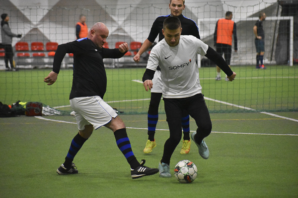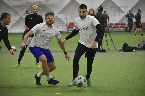 Już w drugiej minucie worek z bramkami otworzył Bartek Per. Wyrównał po samobójczym trafieniu Maciek Wasilewski. „Biali” nie stracili werwy i przed przerwą wypracowali sobie lekką zaliczkę (4:2). Po przerwie kontakt złapał Kacper Szałecki, ale na jego gola odpowiedzieli Michał Burzej i Mariusz Malara. W ostatnich sekundach rozmiary porażki THE BLUE zmniejszył Paweł Cebula. Somfy zgarnia pierwszy komplet punktów, a ekipa Łukasza Swoszowskiego za tydzień będzie szukała przełamania.