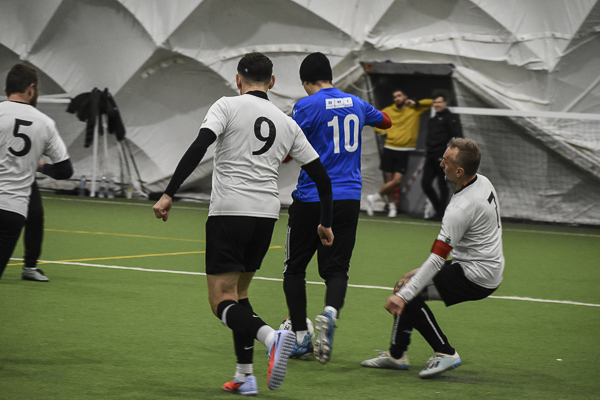 Nie zawiodło spotkanie dwóch doświadczonych zespołów. Żadna ze stron nie potrafiła zbudować sobie większej przewagi, a ciosy jednych bezlitośnie ripostowali drudzy. Na szybkie prowadzenie BWI Group wyprowadził Bartosz Tabeński, co jeszcze przed przerwą spotkało się z odpowiedzią Jacka Dziduszki. Po zmianie stron swoje zrobił Kamil Rugała, jednak i to skarcili Piotr Chrząszcz i Sławomir Wątroba. Ostatnie słowo należało do Marcina Maciny i ligowy klasyk zakończył się sprawiedliwym remisem.