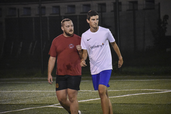 Bardzo trudne warunki nowemu mistrzowi postawiło Somfy. Zawodnicy w białych koszulkach prowadzili nawet do przerwy 1:0, a wszystko za sprawą pechowej interwencji Szymona Stalmacha. Gracz ten odkupił winy po przerwie, a kolejny dobry mecz rozegrał Kacper Skałka. Król strzelców III Ligi D najpierw wyrównał stan boju, a potem w ostatniej minucie meczu zripostował cios Sylwestra Dyby i zapewnił „Czerwonym” kolejne punkty.